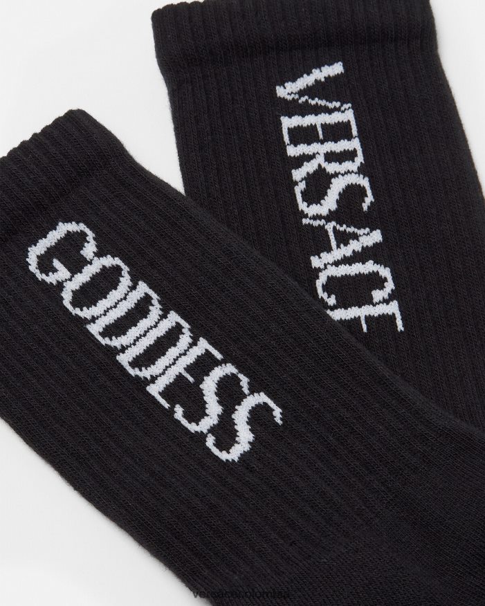 mujer calcetines de diosa Versace negro 2RP40F1110 ropa interior y ropa de playa