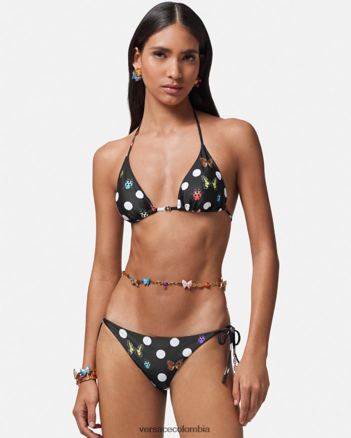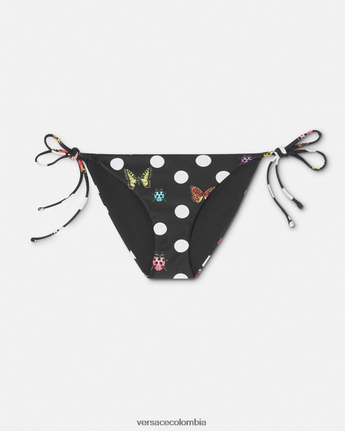 Estas braguitas de bikini de lunares tienen un estampado de mariposas y mariquitas con detalles de medusa. Este diseño de ropa de playa se puede combinar con un top de bikini con el estampado a juego. dua lipa x versace es una cápsula de estilos diseñados en colaboración con dua lipa y presentados en la pasarela de cannes.