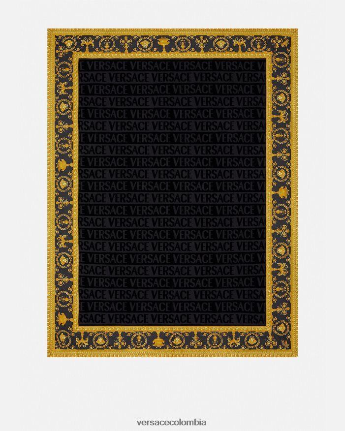 una lujosa toalla de playa de felpa de algodón suave que presenta un motivo tonal de versace en toda la prenda con bordes en contraste con estampado barroco.