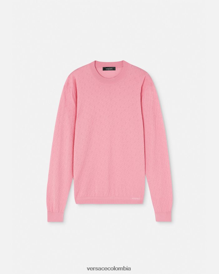 hombres suéter la greca en mezcla de seda Versace rosa 2RP40F1327 ropa