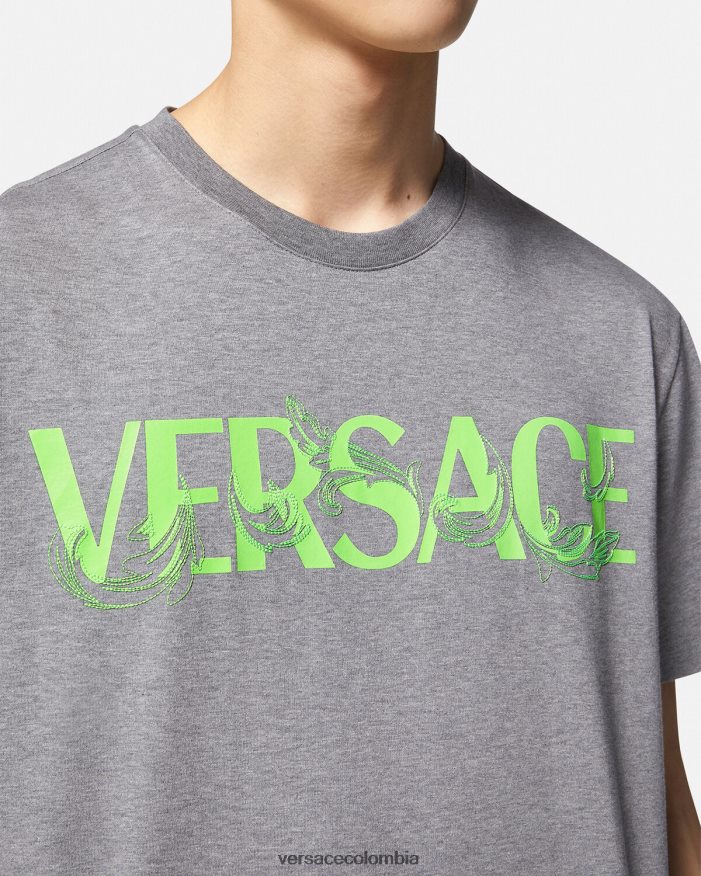 Esta camiseta de algodón de manga corta presenta hojas de acanto características del motivo barroco de Versace bordadas en las letras del logotipo delantero.