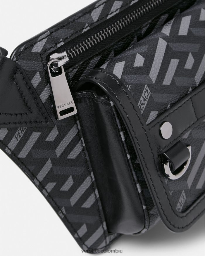 Informal pero versátil, esta riñonera con estampado de la firma La Greca se puede llevar fácilmente cruzada en el pecho o alrededor de la cintura. El diseño está adornado con un bolsillo adicional en la parte delantera.