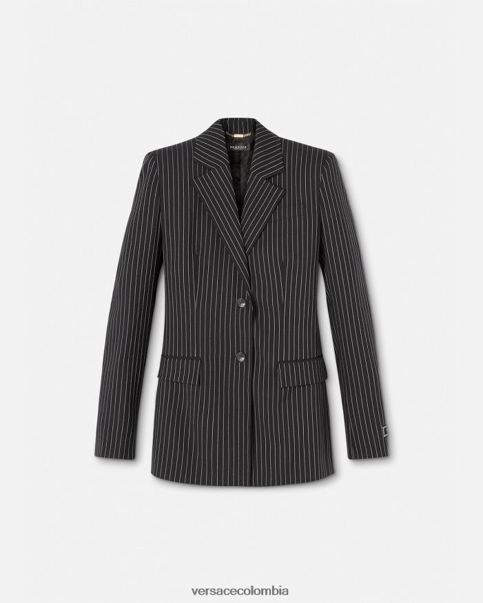 Hombros afilados y entallados aparecen en este blazer de botonadura sencilla con elegantes rayas diplomáticas y una impecable solapa con muesca para una silueta poderosa.