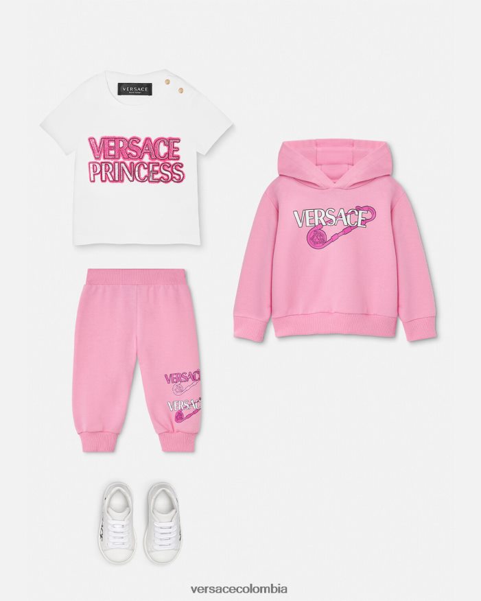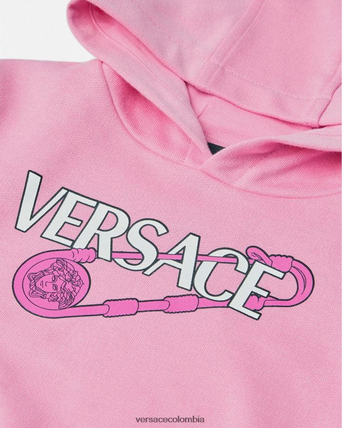 Confeccionada con punto de algodón, esta sudadera con capucha presenta un estampado infantil con imperdible y el logotipo de Versace en la parte delantera.