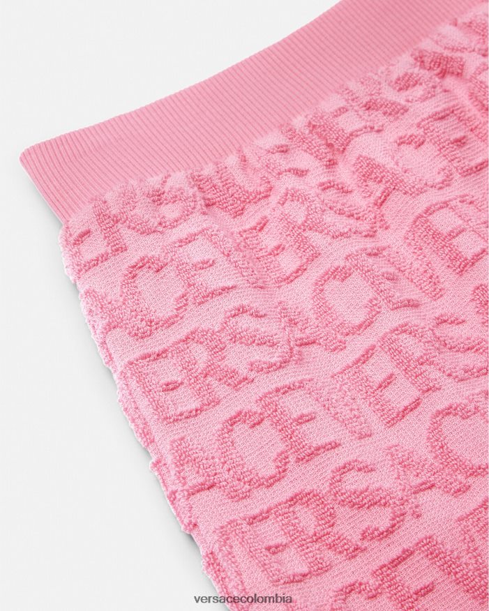 Esta falda versátil se puede usar para citas de juego y días de playa gracias a su tejido de toalla mini me con el estampado integral de Versace. El estilo no está forrado y está rematado con cinturillas elásticas de canalé.