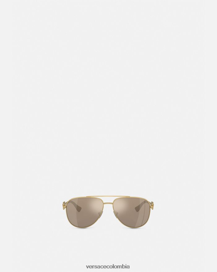 Estas gafas de sol con forma de aviador cuentan con finas monturas de metal y herrajes de medusa en el lateral.