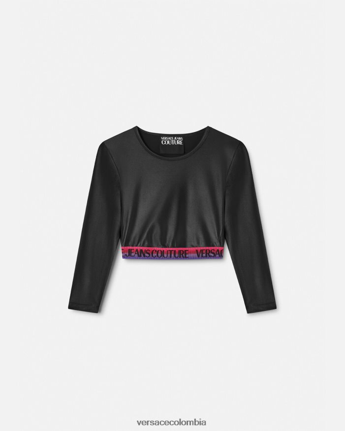 Este top corto de manga larga tiene un acabado satinado y presenta una cinturilla con logo.