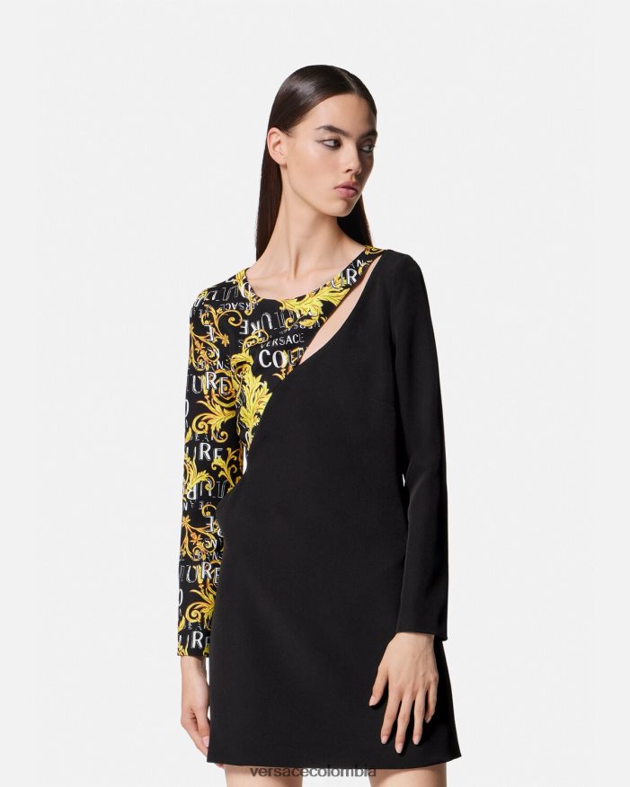 un minivestido recto de manga larga con detalle de abertura en la parte delantera y el logo de alta costura estampado en una manga.