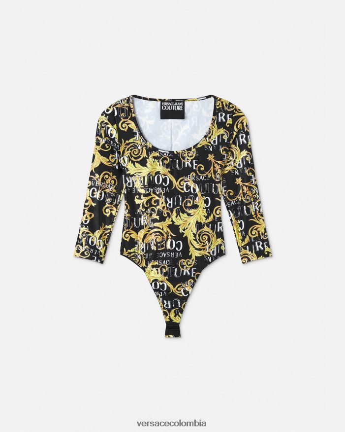 Este body elástico de manga larga presenta un logotipo de alta costura estampado por toda la prenda.