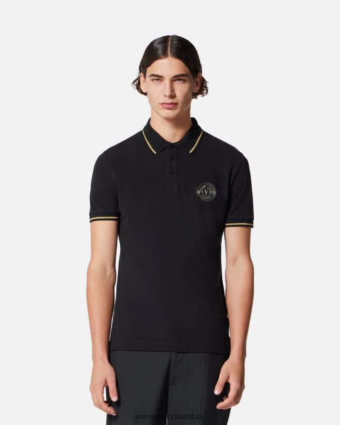 hombres playera tipo polo con emblema en V Versace oro negro 2RP40F2363 ropa