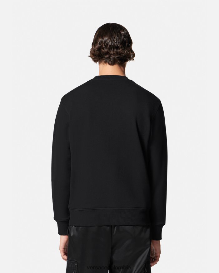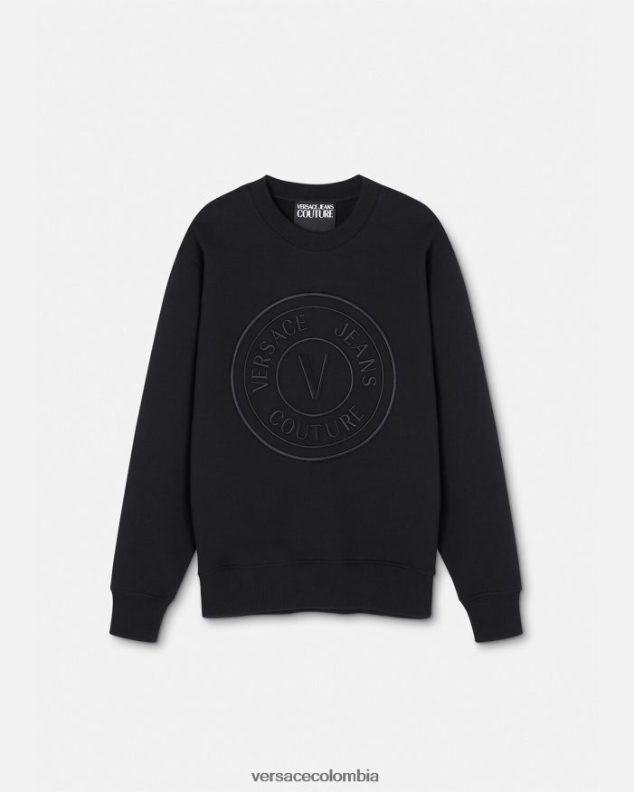 hombres sudadera con emblema en V bordado Versace negro 2RP40F2412 ropa