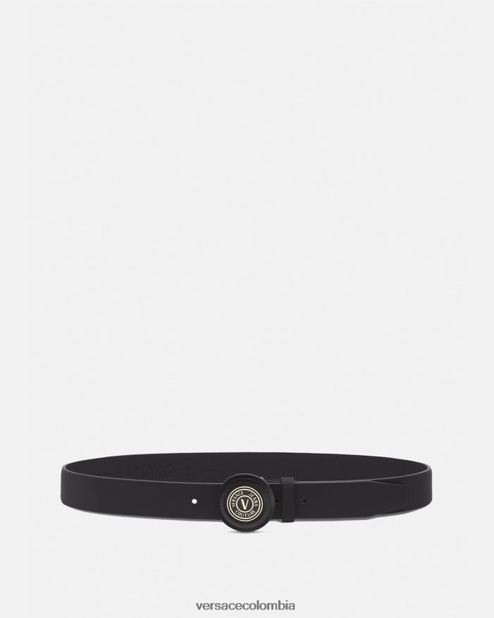 Este cinturón de cuero está fabricado en Italia y rematado con la hebilla con el logo del emblema en V.
