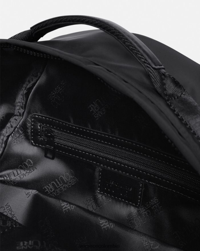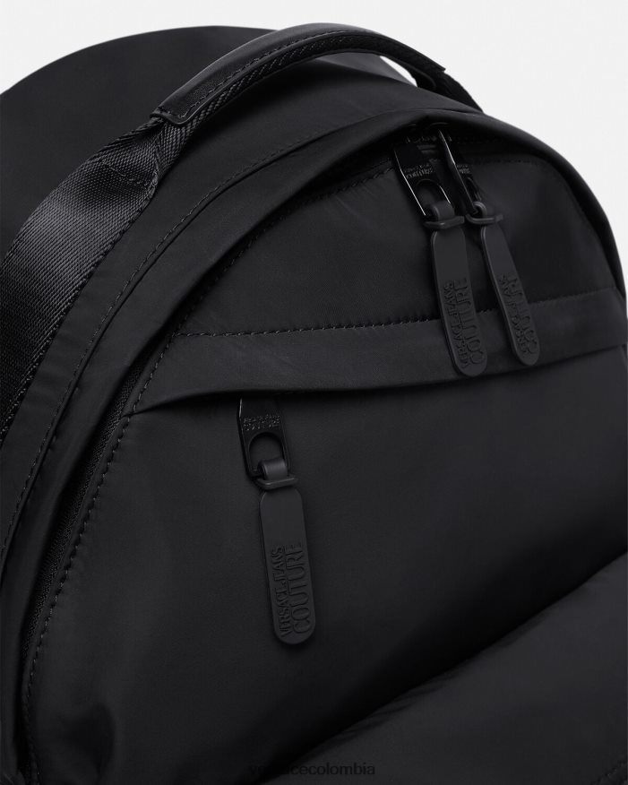 Esta espaciosa mochila de nailon presenta un logo de alta costura en el bolsillo delantero y detalles ribeteados de satén en las correas.
