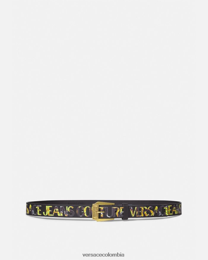un cinturón de cuero con un logotipo impreso de alta costura.