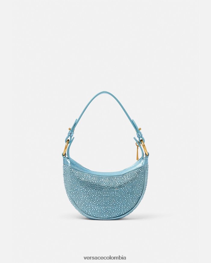 Una edición mini de la silueta hobo, el bolso de hombro repetido está adornado con cristales y ribetes de cuero. Un emblema de la Medusa adornado con cristales tonales acentúa el accesorio. dua lipa x versace es una cápsula de estilos diseñados en colaboración con dua lipa y presentados en la pasarela de cannes.