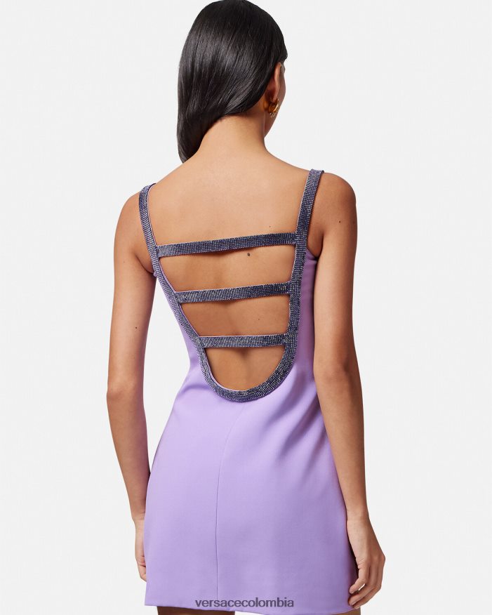 versace presenta dua lipa x versace, una colección cápsula codiseñada con dua lipa. Este minivestido recortado tiene una silueta ajustada con ribetes adornados con cristales y cierres de hebilla.
