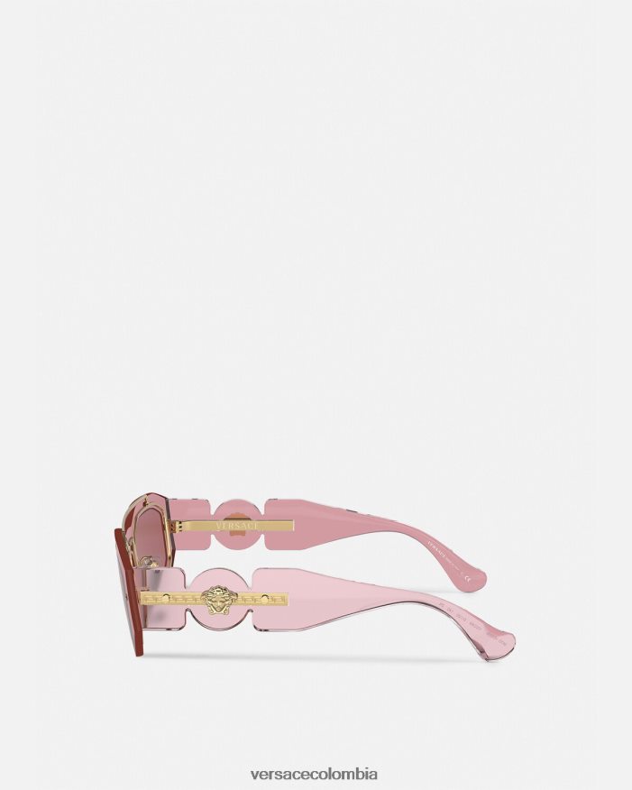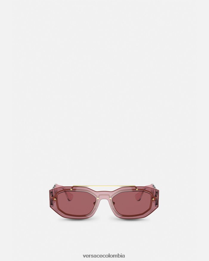 Inspiradas en la cultura hip-hop de los 90, estas gafas de sol cuentan con monturas de acetato transparente y patillas anchas adornadas con medusa. un puente nasal doble de metal acentúa la forma rectangular y las lentes tonales.