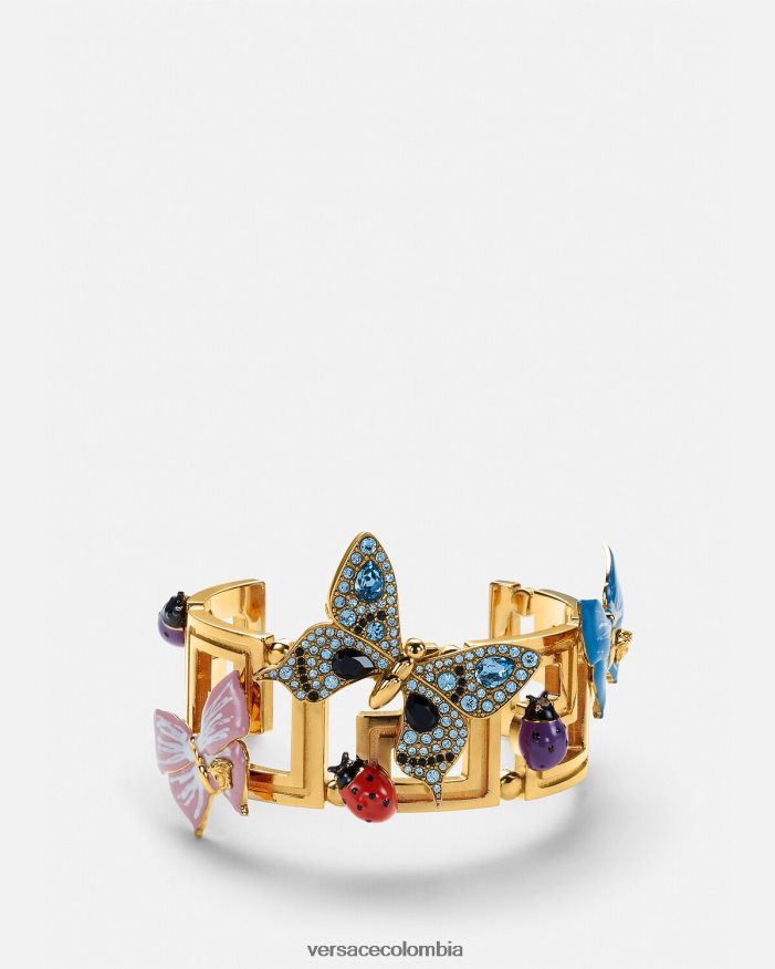 Esta pulsera presenta un motivo de greca con adornos de mariposas y mariquitas. Cada pieza es única y puede variar ligeramente de la imagen mostrada debido a su calidad aplicada y pintada a mano. Todos los productos de joyería de Versace no contienen plomo ni níquel. Todos los materiales son hipoalergénicos. dua lipa x versace es una cápsula de estilos diseñados en colaboración con dua lipa y presentados en la pasarela de cannes.