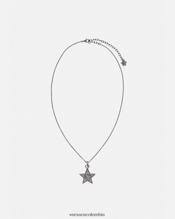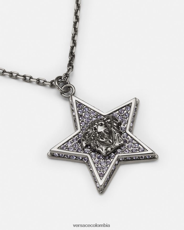 un collar de cadena con colgante de estrella adornado con cristales y un dije central de medusa. Todos los productos de joyería de Versace no contienen plomo ni níquel. Todos los materiales son hipoalergénicos.