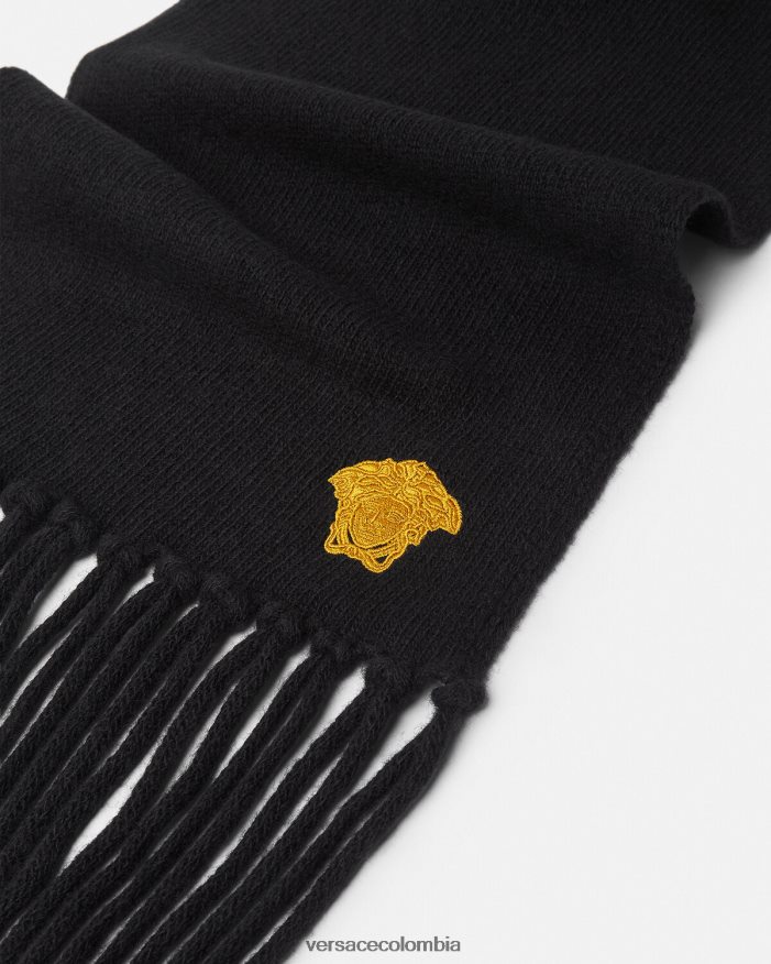 Confeccionado con una mezcla de lana y cachemira, este diseño ultrasuave está adornado con una medusa bordada y bordes con flecos.