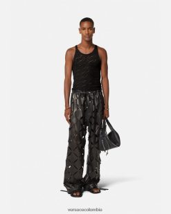 hombres camiseta sin mangas de punto con encaje la greca Versace negro 2RP40F1340 ropa