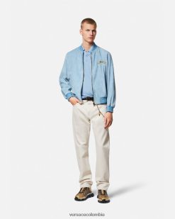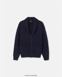 hombres cárdigan de punto con la greca Versace azul 2RP40F1343 ropa