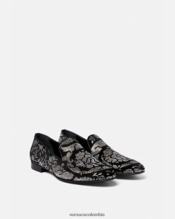 hombres pantuflas con silueta barroco y tachuelas Versace negro 2RP40F1571 zapato