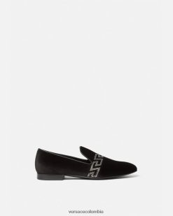 hombres pantuflas de terciopelo con greca y tachuelas Versace negro 2RP40F1572 zapato