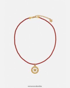 mujer collar con placa de medusa y cuentas Versace burdeos y oro 2RP40F816 accesorios