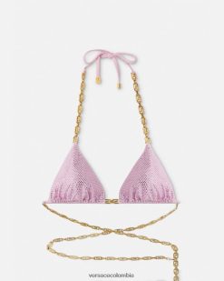 mujer top de bikini con greca de cristal Versace rosa 2RP40F1125 ropa interior y ropa de playa