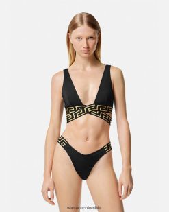 mujer top de bikini con borde de greca Versace negro 2RP40F1152 ropa interior y ropa de playa