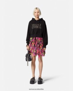 mujer sudadera corta con capucha y tachuelas de diosa Versace negro 2RP40F145 ropa