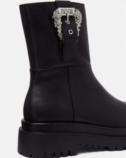mujer botas militares con hebilla barroca Versace negro 2RP40F2270 zapato