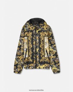 hombres chaqueta cortavientos de alta costura con logo Versace negro y estampado 2RP40F2414 ropa