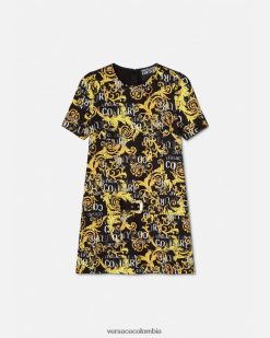 mujer vestido corto de alta costura con logo y cremallera Versace oro negro 2RP40F2182 ropa