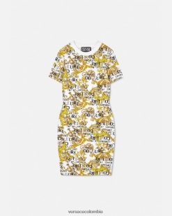 mujer vestido estilo camiseta de alta costura con logo Versace oro y blanco 2RP40F2185 ropa