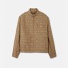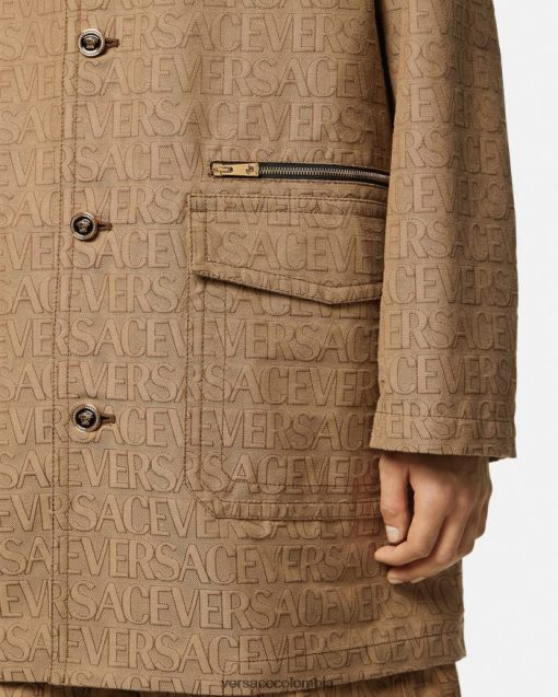 Este abrigo de lona técnica presenta un patrón de logotipo de Versace en jacquard, acentuado por piezas metálicas de medusa esmaltadas y un forro parcial de color barroco.