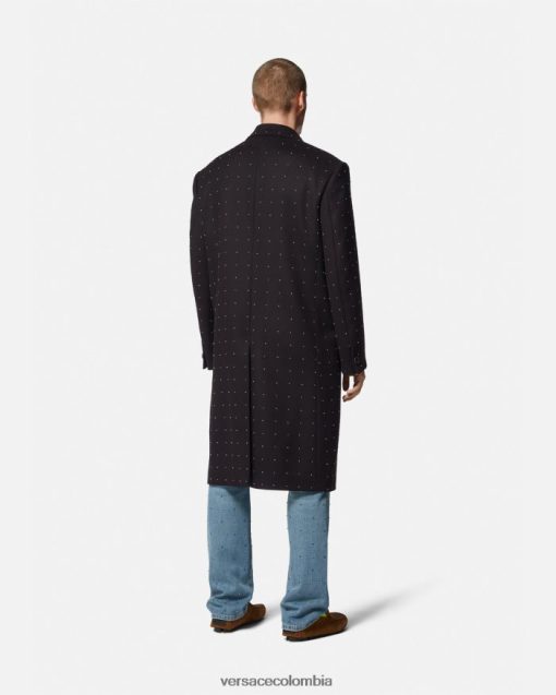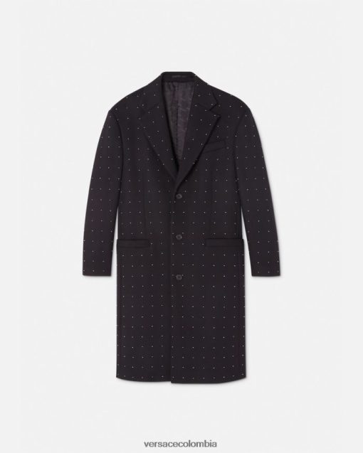 Confeccionado en lana, este abrigo largo está realzado por una rejilla de tachuelas táctiles. El diseño de botonadura sencilla tiene solapa de muesca y bolsillos ribeteados.