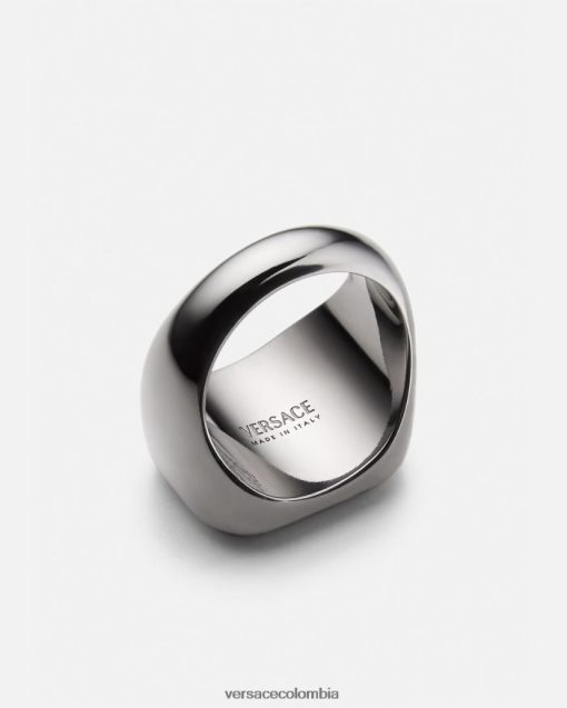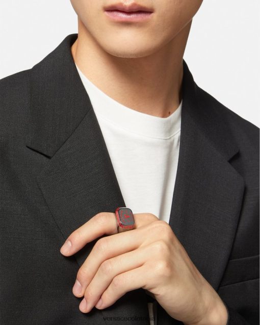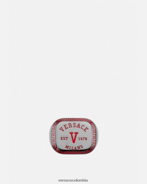 un anillo de banda ancha, grabado con un borde de greca y un logotipo del equipo universitario, un símbolo orgulloso de pertenecer a la familia versace. Ninguno de los productos de joyería de Versace contiene plomo ni níquel. Todos los materiales son hipoalergénicos.