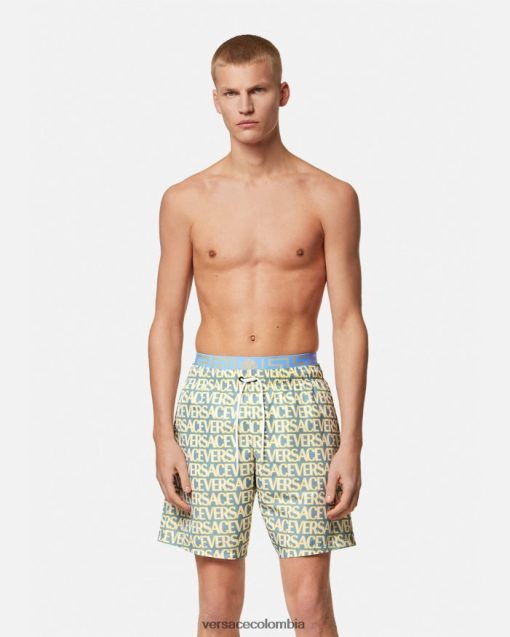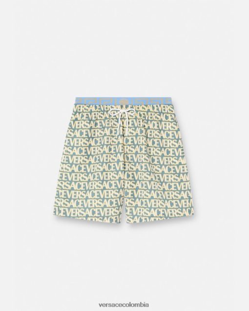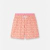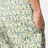 Estos bañadores de baño cuentan con una cinturilla con borde de Greca en un diseño de capas simuladas, un estampado integral de Versace y un bolsillo trasero.