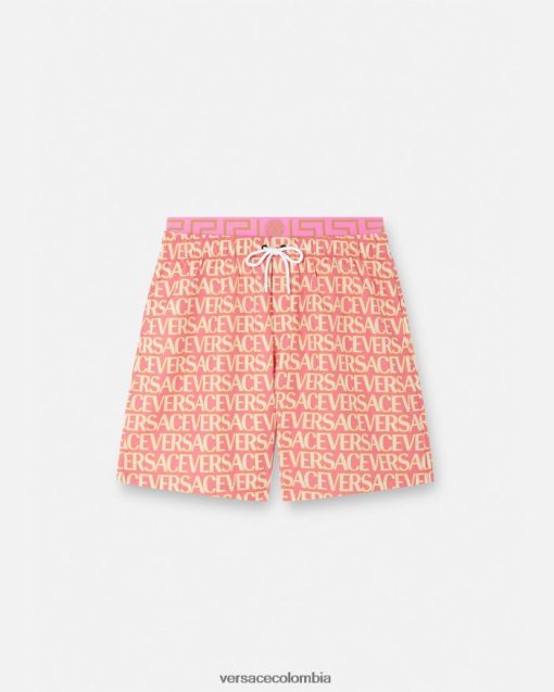 Estos bañadores de baño cuentan con una cinturilla con borde de Greca en un diseño de capas simuladas, un estampado integral de Versace y un bolsillo trasero.