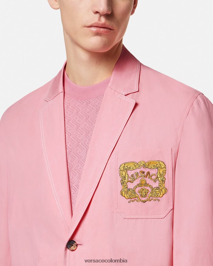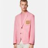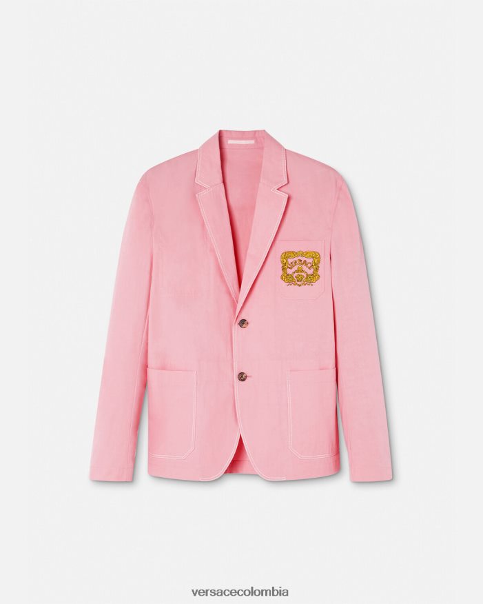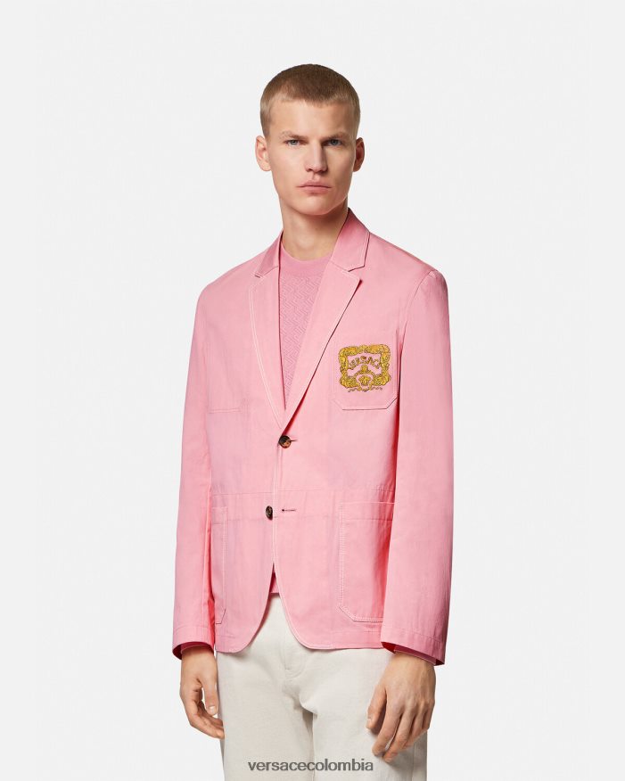 Este blazer de algodón ligero tiene un diseño de botonadura sencilla con costuras en contraste y un bolsillo de parche en el pecho con un motivo de logo bordado de concha barroca.