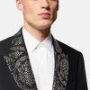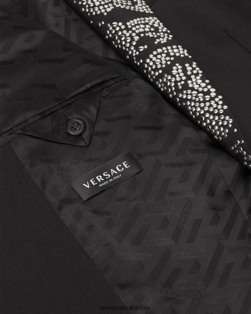 Confeccionado en una mezcla de lana y mohair, las solapas puntiagudas de este blazer de botonadura sencilla presentan resistentes tachuelas de metal con un patrón de silueta barroca. Con un solo frente abotonado, este estilo formal está detallado con bolsillos ribeteados y un forro con estampado de La Greca.