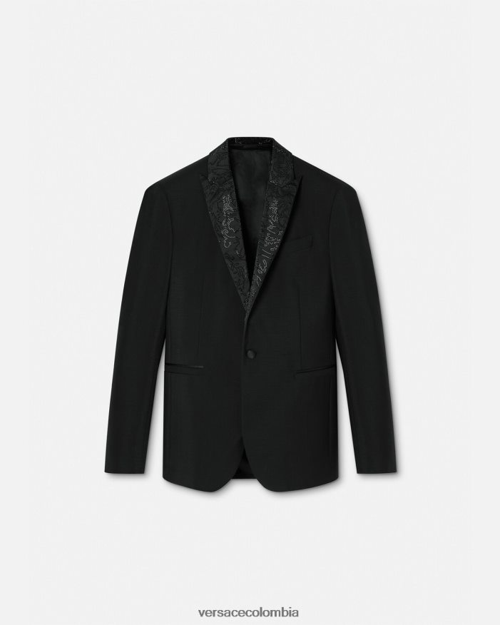 En verdadera elegancia de Versace, este blazer de botonadura sencilla está adornado con adornos de cristal de silueta barroco tonal en las solapas ribeteadas de satén. Está terminado con un cierre de un solo botón para una apariencia impecablemente confeccionada.