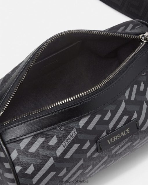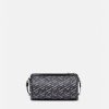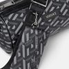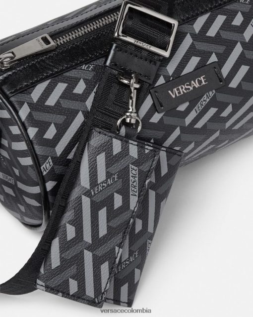 Confeccionado en lona revestida con la firma La Greca, este bolso bandolera tipo barril tiene un diseño cilíndrico con una correa para el hombro ajustable y desmontable de La Greca y un tarjetero adicional.