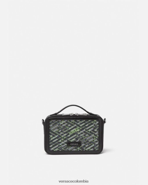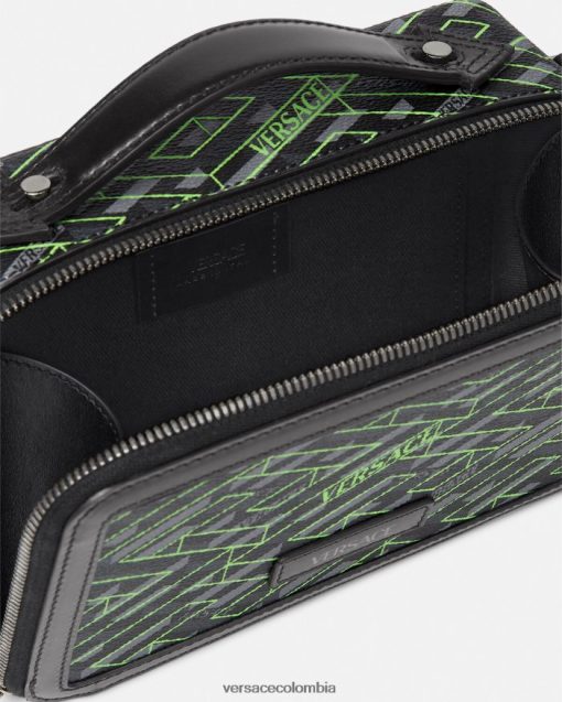 Este bolso bandolera compacto, confeccionado con lona revestida, presenta el estampado característico de La Greca con una inyección de color neón brillante. Con una correa para el hombro ajustable y removible, este estilo cruzado tiene un cierre de cremallera bidireccional y se completa con ranuras interiores para tarjetas.