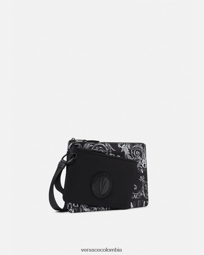 hombres bolso de mano Couture con doble logo y emblema en V Versace negro y gris 2RP40F2496 accesorios