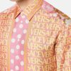 una camisa de sarga de seda de manga larga con botones que presenta el estampado de lunares de Versace en la parte delantera y un panel con estampado de lunares barrocos de concha marina en la parte posterior.