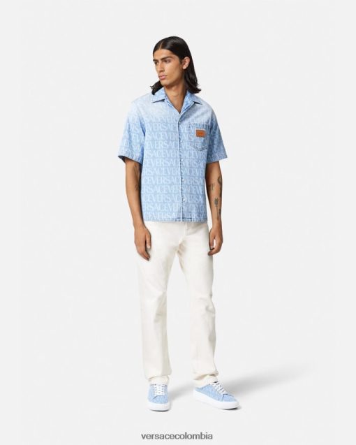 hombres camisa vaquera integral Versace azul 2RP40F1283 ropa