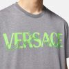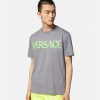 Esta camiseta de algodón de manga corta presenta hojas de acanto características del motivo barroco de Versace bordadas en las letras del logotipo delantero.